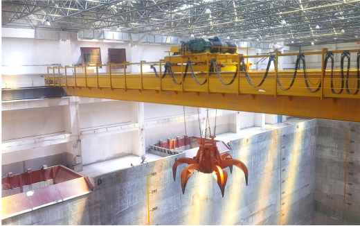 本方案適用于智能垃圾抓斗起重機(jī)電氣系統(tǒng),用于秸桿運(yùn)輸車輛進(jìn)入儲(chǔ)料棚卸料區(qū)域的卸料、對(duì)儲(chǔ)料棚內(nèi)燃料的全方位垛料、向地下料斗的給料等。
